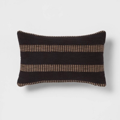 Evoke a feeling of warmth in your interiors with this Woven Linework Lumbar Pillow from Threshold™️. Made from 100% cotton and generously filled so it's soft to the touch, this decorative lumbar pillow features a woven construction with contrasting linework striped pattern to bring timeless appeal to your space. Toss it on your sofa or armchair, or pair it with other throw pillows and blankets to create a cozy ambiance.