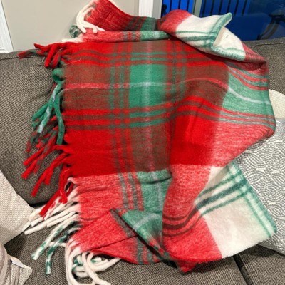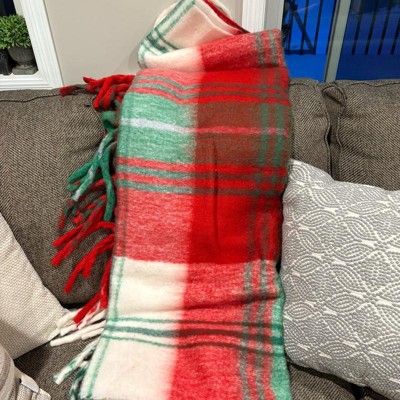 [This review was collected as part of a promotion.] This woven plaid throw blanket in red, green, black and white goes perfect with my living room! Also, it’s perfect for Christmas time with all the colors in it! The fabric is super soft and stretchy, so it can fit any person wanting to use it! The material is really soft on your skin and it’s a nice thickness…not too thick and not too thin, so it’s always comfortable for you to use!