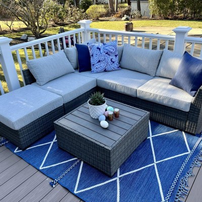 A: This rug is perfect for completing outdoor spaces, especially under furniture like coffee tables and chairs.
