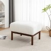 [This review was collected as part of a promotion.] The white square ottoman with a dark brown wooden frame and four legs is a stylish and functional addition to any living space. Its clean, modern design fits well with both contemporary and traditional decor, making it a versatile piece. The sturdy wooden frame ensures durability, while the cushioned top provides comfort for seating or as a footrest.