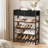 WOWLIVE 5-Tier Shoe Rack Black Metal with Wood Top Shelf and 2 Non-woven Drawers,Rustic Brown Black White