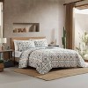 Authentically crafted with comfort in mind, the Wrangler cotton quilt collection is the ultimate bedding staple. This geometric quilt pattern features soft blue, beige, and green quilt patterns on white ground. The colors are muted, including shades like pale blue, beige, and light green. The pattern incorporates floral and dotted designs within some of the shapes. Each quilt is filled with a premium blend of cotton and polyester, making it warm yet lightweight. The quilt is machine washable for easy care and is thoughtfully packaged with a ribbon and insert card, making it perfect for gifting.