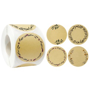 Wrapables 2 inch Canning Label Kraft Stickers for Lids, Mason Jars, Spice Bottles, Pantry, Homemade Products, Small Business (500pcs), Floral Sprig