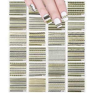 Our Gold, Silver & Black Nail Sticker Nail Strips Set Nail Art comes with 24 sheets of Gold & Black Nail Strip Nail Stickers. Each sheet is packed with tons of gold and black strips of nail stickers to choose from! Easy to apply and to remove.