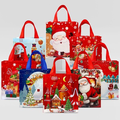 - INCLUDES: Set of 8 bags with handles in various Christmas & Holiday designs.