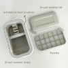 This multi-functional paint brush cleaner is the perfect artist and painter's tool. The brush basin can be used to clean and hold brushes. With 16 holes around the edges, the basin can hold different size brushes. One side of the basin has slanted grooves which can be used for scrubbing off paint and cleaning brushes. For the hard to clean paint, use the scraping tool on top. The other side of the basin can be used for soaking and reshaping brush bristles. The palette color tray has 18 wells for different colors and paints. Use the palette tray to hold acrylic, watercolor, tempera, gouache, water-based paints and more. If you need to mix colors, simply use the back of the lid as an artist palette. Made with durable plastic, the holder is compact, lightweight and easy to clean. Comes with a handle to conveniently carry and take with you anywhere.
