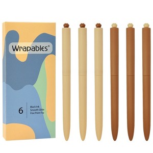 Wrapables Retractable Black Ink Gel Pens, 0.5mm Fine Point, for Home Office Work (Set of 6), Sepia