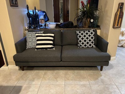 - Measuring 76-inches wide and able to accommodate up to 600 lbs, this handcrafted, mid-century modern sofa is an oversized loveseat for 2 people and an ideal choice for smaller living rooms, apartments, and open-concept condos.