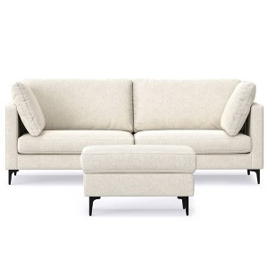 - Handcrafted with quality materials, both the couch and ottoman have sturdy, corner-blocked frames made with solid and engineered woods; webbing and high-gauge sinuous springs under the seats to prevent sagging; and powder-coated metal legs in a black finish.