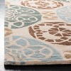 The rug features a harmonious blend of beige and blue hues, which create a mesmerizing pattern reminiscent of intricate mandalas and geometric motifs. This unique design brings a serene yet sophisticated look to any hallway or narrow space, ensuring that it complements a wide range of interior styles from traditional to contemporary.