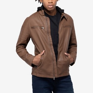 X RAY Men's Utility Jacket With Faux Shearing Lining.A Classic Moto Pu Leather Jacket Made With Its Sleek Biker Look Design.Fabric:Shell 100% Polyurethane, Lining 100% Polyester. Soft Feel Lining To Keep You Warm. Full Zip Closure At Front. High Collar Neck.Moto Detail & A Aeronautical Look.Faux Shearing Lining. Features 2 Hand Pockets, 2 Zippered Chest Pockets And 1 Internal Pocket.This Men's Leather Jacket Features A Timeless Vintage Style, Stand Up Collar, Moto Detail & A Aeronautical Look. Looks and Feels Like Real Leather. Sweater Front and Hood Are Removable.