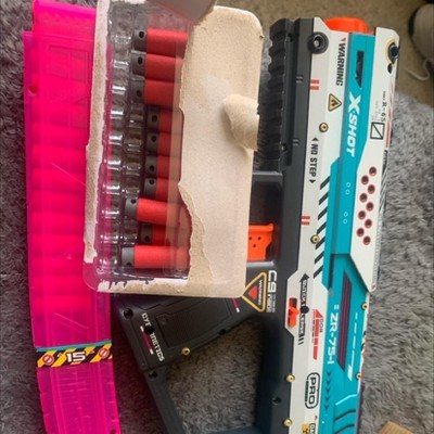 I have been waiting on this blaster to get to the states for MONTHS! X-Shot has lowered the bar for entry into the Pro Foam Blaster space. At $15 I am 100% BLOWN AWAY by the performance of this blaster! 40 darts are included. AND it comes with an AWESOME Pink 15 dart Mag, I want a Pile of them!!