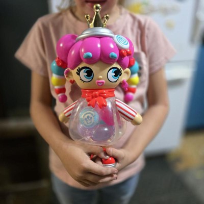[This review was collected as part of a promotion.] This doll is adorable! The bright, fun colors really excited my daughter, and she LOVED the candy in the dolls belly. This doll is heavier than expected and doesn’t really do much other than move arms and head, but my daughter still loved her! Especially the crown - she wants one “just like it”! This version is MUCH larger than the 100% scale figurines, but the details are the same! We plan to buy the smaller version as well so she can play “mommy and me”.