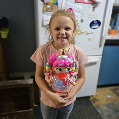 [This review was collected as part of a promotion.] This little doll was not as expected by any means lol. I thought it would be an actual doll but instead it’s a hard plastic “doll” that’s belly opens up with “candy” inside but it’s not real candy lol. It has a label for choking hazard and the minimum age starts at 7. My 6yo likes it I’m just scared of it drops or gets thrown by the 3yo it may break and become a super hazard.