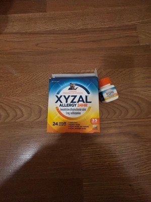 Xyzal Allergy 24HR Tablets are designed to provide continuous 24-hour, full prescription strength relief of your worst allergy symptoms. Due to the active ingredient, levocetirizine dihydrochloride 5mg, this allergy medication provides all night, all day relief of sneezing, runny nose, itchy, watery eyes, and itchy nose or throat. Xyzal Allergy 24HR starts working in an hour to ease your allergy symptoms as you rest. Allergy-symptom relief allows you a better quality of sleep throughout the night and a better night's sleep means you wake up refreshed and ready to attack the entire day. As effective at hour 24 as it as at hour one, Xyzal Allergy 24HR is designed to help you put in the work all day, every day. Use as directed.