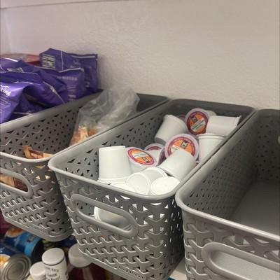 I absolutely love these storage baskets. I have purchased these for other reasons but I purchased these since I was redoing my pantry to keep snacks organized.