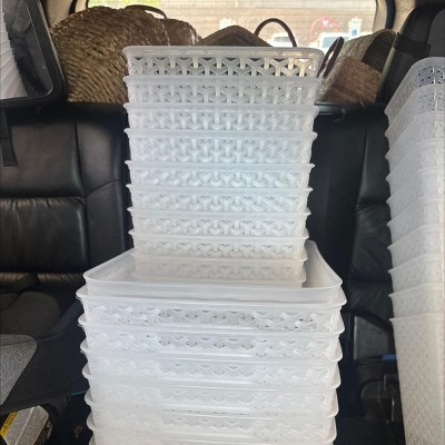 Keep your space clean and free of clutter with the Y Weave Half Medium Storage Bin from Brightroom™. It is functional and versatile to fit your every need; use it in any room to store paper, keys, toiletries, accessories and more. The storage basket is made of sturdy plastic with a Y-weave, making it both durable and stylish.