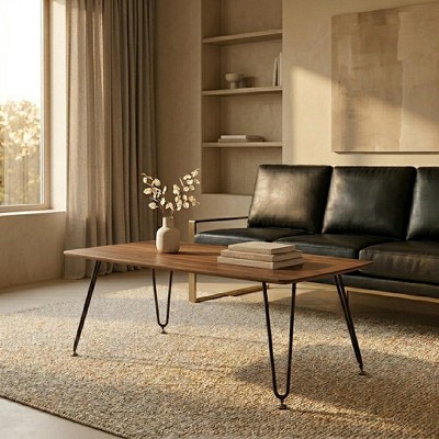 Rustic Natural Charm: The wood panel, featuring a vintage wood grain in earthy rustic brown, pairs beautifully with the unadorned matte metal frame in a chic style. This coffee table brings a calming, natural vibe to your living space, creating a soothing and vintage atmosphere that invites relaxation