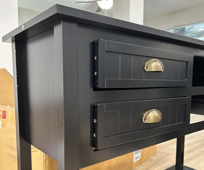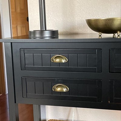 Perfect table for my spooky setting. Gold hardware matches my lighting and love the storage in the four drawers