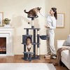 【Perfect Playhouse】 A nicely-cushioned top perch with cat-ear-shaped foam edging, a fluffy condo, an extended platform, and a comfy basket provide multiple cozy napping and lounging spots for your beloved cats.