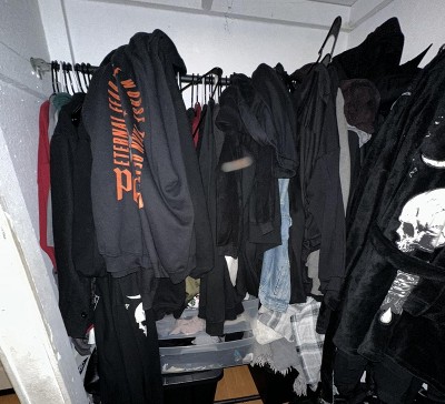 I had this for a year and man hands down the best !! It’s metal and it won’t fall !! I suggest putting totes so it will level it out from falling. Trust me I have a lot of hoodies and the stuff under I have all my Halloween decor and it’s heavy still won’t fall.
