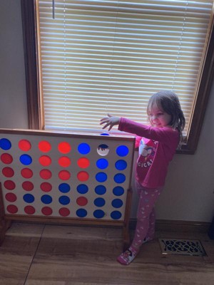 [This review was collected as part of a promotion.] Fun, fun, fun! This is an amazing Connect four. It is well made and sturdy. You can use it both outdoors and in a kid's bedroom. It's attractive and easy to assemble. The disc slide in easily for hours of fun. This makes a nice gift for a family or any Connect four players. Oh, and it has a nice storage bag