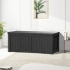Yardgrace Deck Box, made of water-resistant resin, features a lockable design (padlock sold separately) for secure storage of tools, cushions, etc. Sturdy enough to double as seating or a small table, it works indoors (garages, basements) and outdoors, blending into any space.
