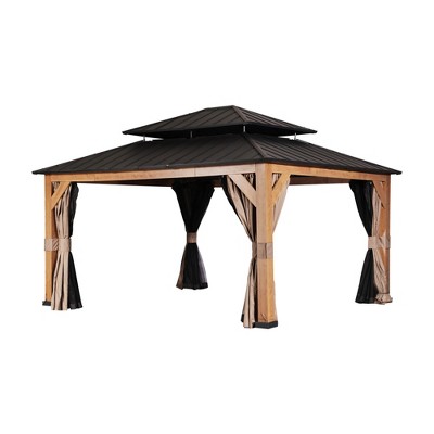 YARDSIGHT 10x10 FT Hardtop Metal Patio Gazebo, Double Roof Outdoor Canopy Shelter with Curtains & Netting for Backyard, Deck & Garden