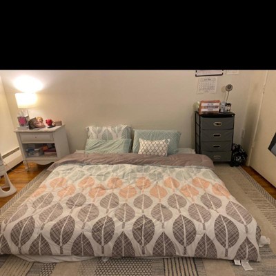 [This review was collected as part of a promotion.] My son is headed off to college so, naturally, I'm turning his room into a guest room. I wanted something that was gender neutral and modern. As soon as I saw this set I knew it was the one. Bonus, everything you need is in the bag. There is no searching for matching sheets and pillows. The material is soft without looking frumpy. I would definitely recommend this set to anyone.
