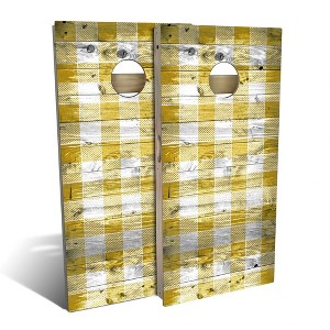Product Name: Skip's Garage | Yellow Checkered Cornhole Board Set | All-Weather | Add Carrying Case