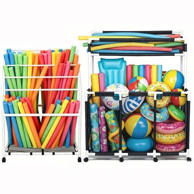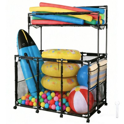 Yescom Metal Frame 10 Wheels Rolling Mesh Pool Storage Bin Pool Floats Storage Organizer for Pool Toys Balls Pool Noodles, Black 2026
