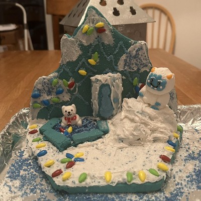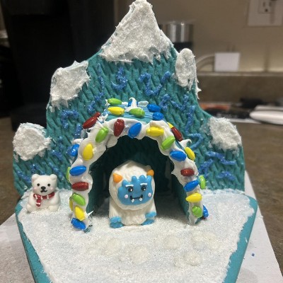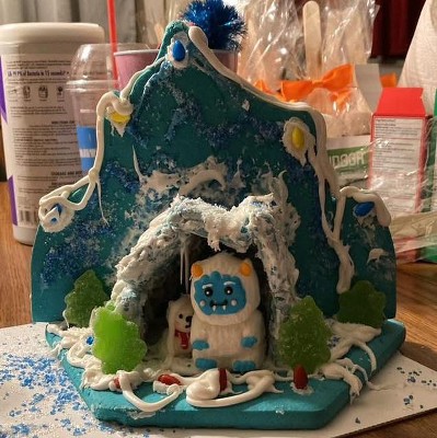 It was difficult to put the pieces together. It was fun trying to build the Yeti Cave. Instructions were very easy to read and understand for my 8 year old niece. Comes with plenty of icing and candy for decorating. My niece loved the two little statue figurines that came in with the kit. Statue figurines were Yeti and a baby polar bear with a scarf.