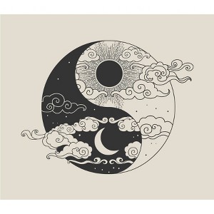 Captivating and harmonious, this boho tapestry adds whimsy to any space with ease. Adorned with a sun and moon, this Yin Yang tapestry is lightweight and easy to hang and display in any bedroom, dorm room, or hangout space.