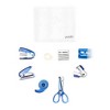 - Kit includes: pencil sharpener, scissors, stapler, staple remover, staples, tape dispenser, tape refill, hole puncher and carrying case