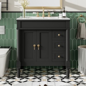 YOOCOZZ 30 & 36 Inch Bathroom Vanity with Ceramic Sink, Solid Wood Frame + MDF, 2 Doors 3 Drawers, Soft-Close Design, U-Shaped Adjustable Shelf