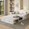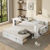 - 4-in-1 Transformative Design that effortlessly converts between a comfortable sofa, a full bed, a practical desk, and an organized storage unit.
