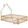 YOOCOZZ Full Size House-Shaped Headboard Floor Bed with Fence