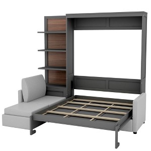 YOOCOZZ Queen Size Murphy Bed Wall Bed with Sofa and Shelves