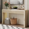 This versatile console table masterfully merges on-trend design with everyday functionality. Its defining feature is the elegant fluted texture on the drawer fronts, which adds striking visual depth and a subtle tactile grip, eliminating the need for external handles for a sleek, minimalist profile. Crafted with a durable wood veneer finish over a sturdy frame, it radiates a warm, natural charm that complements farmhouse, coastal, and contemporary decors alike. The generous tabletop offers a robust surface for displaying decorative items or supporting everyday appliances, while the smooth-gliding drawers provide discreet, organized storage. Practicality is enhanced with integrated adjustable feet, ensuring perfect stability on any floor surface. Designed to adapt seamlessly, it serves perfectly as an entryway table, sofa back console, or hallway accent, blending clean lines, textured detail, and reliable construction into one stylish piece. Clear assembly instructions are included for easy setup.