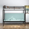 This Twin over Full Metal Bunk Bed with Multi-Function is a versatile and stylish addition to any bedroom. The bed features a solid and secure metal frame that complements any decor. It includes added safety features such as a full-length guardrail, childproof mechanism, and an integrated ladder. The bottom bunk can be converted from a futon or seated position into a full-size bed, offering flexibility for seating or additional sleeping space. This multifunctional design is perfect for accommodating guests, siblings, or sleepovers. The bed ships ready-to-assemble, making setup quick and easy.