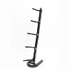 Maximize your workout space with the York Vertical Medicine Ball Display Stand, perfect for apartments and small home gyms. This sleek, compact rack holds up to five medicine balls of any size, keeping them organized and easily accessible. Its angled frame ensures even weight distribution, providing stability and safety during storage. The stylish black finish complements any workout area, adding both functionality and aesthetic appeal. Lightweight yet durable at 17 lbs, this stand is a practical addition to your fitness setup.
