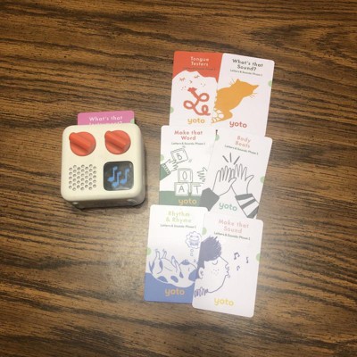 [This review was collected as part of a promotion.] This letters and sounds: phase 1 pack comes with 7 different cards, each card with a different activity. I have a 4-year-old, who is attending preschool this school year, but also a 2-year-old. When we popped these into our Yoto mini player to listen to and participate in, my 2-year-old enjoyed playing too. As a teacher, this product makes my teacher heart happy because these are those tricky pre-reading skills that are hard to explain to parents what they should be doing with their child to prepare them to read independently. So glad to have this as a screen free pre-reading activity for my toddlers. I received an incentive to write this review.