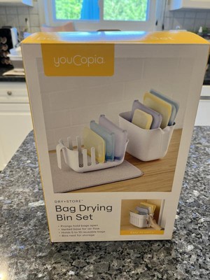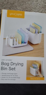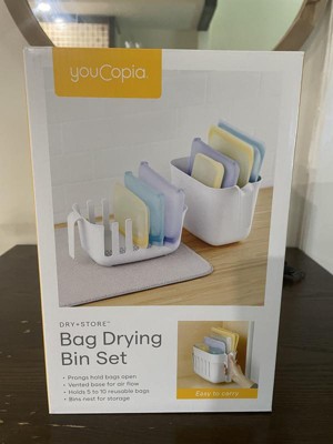 YouCopia Dry+Store Bag Drying Rack and Bin Set: Plastic Baggie Dryer, Multi-Compartment, Stackable, Freestanding