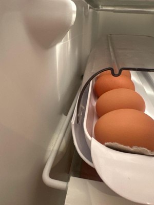 [This review was collected as part of a promotion.] Functional and simple. I’m a big fan! Fits nicely in my fridge and I like that you can put stuff on top of it to maximize space and it’s very easy to pull the eggs out.
