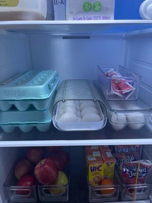 [This review was collected as part of a promotion.] UNIVERSAL SIZE: Holds 12-14 standard, large or jumbo eggs in your fridge DISPENSER: Rolling design brings eggs forward to dispense one at a time for easy access QUICK LOAD: Removable inner tray for quick refills with a sturdy, stackable outer shell CLEAR VIEW: See-through top makes it easy to inventory eggs in a glance so you know what’s left MADE TO FIT: Measures 14.7” D x 6.3” W x 3.3” H; Made from high-quality, BPA-free plastic that’s durable and easy to clean