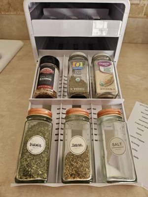I cleaned and purged my spice cabinet during the Christmas holidays. I bought this as one of my organizing tools. Happy with it!