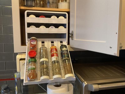 This gem has made my spice access so much more convenient. In a small space I have all the spices I own at my fingertips. No longer am I dragging out a stepstool to reach a corner cabinet where my spices were stashed in 3 different shoe box size containers. Such a relief!