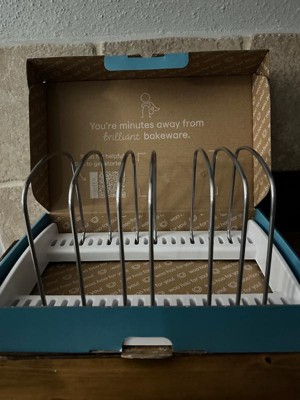 [This review was collected as part of a promotion.] I liked that the spaces in between are adjustable. It definitely saves you space in your drawers and is very sturdy. I’m definitely enjoying my new bakeware rack