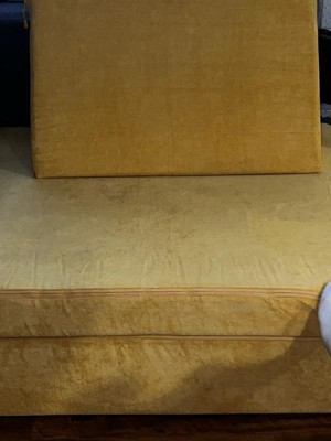 so far I really like this couch. it's not all puffed up yet but it says to give it at least 48 hours and we just opened the box. but right off the bat I love the fabric of the comforter covers. it's a lot thicker than the ones you find on a nugget couch which we have one of those as well. I'm hoping this couch holds up pretty good. hopefully even better than the Nugget name brand. that one has tons of stains. I can't get out but this one should be hardier and hopefully survive my two toddlers a bit longer.
