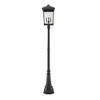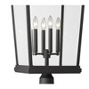 Custom crafting delivers a sophisticated village-inspired look to outdoor spaces, making this four-light outdoor post-mounted fixture from the Beacon collection a superb choice. Dress up a patio or walkway with a fixture crafted of matte black finish aluminum and clear beveled glass, with charming candelabra-style bulb mounts adding a romantic aesthetic. Nestled on an ornate, detail-oriented post, this light fixture adds elegance to any exterior space. Dimmable: Yes Shade Included: Yes